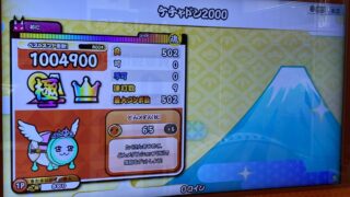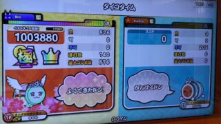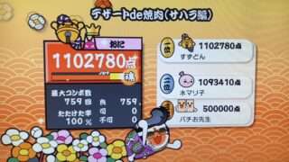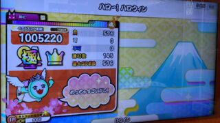 タイコタイムの裏譜面のリザルトと詰めた記録を残しています。ラストはね…無理!音が無くなった状態で高速音符を叩けって…これはもう音ゲーではなくシューティングゲームなのよ。タイミングがわかりやすい分ハロハロの方がまだ良心的だった。