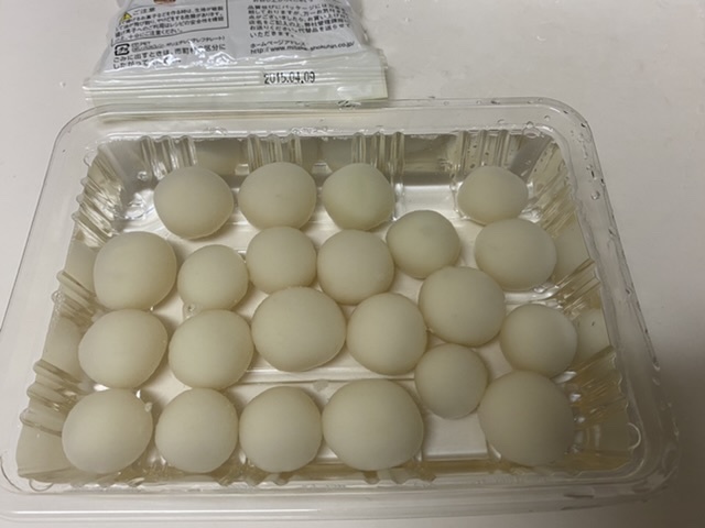 ドッポンして湯が飛ぶのは怖くて嫌だから箸で一個ずつ摘んで入れた。